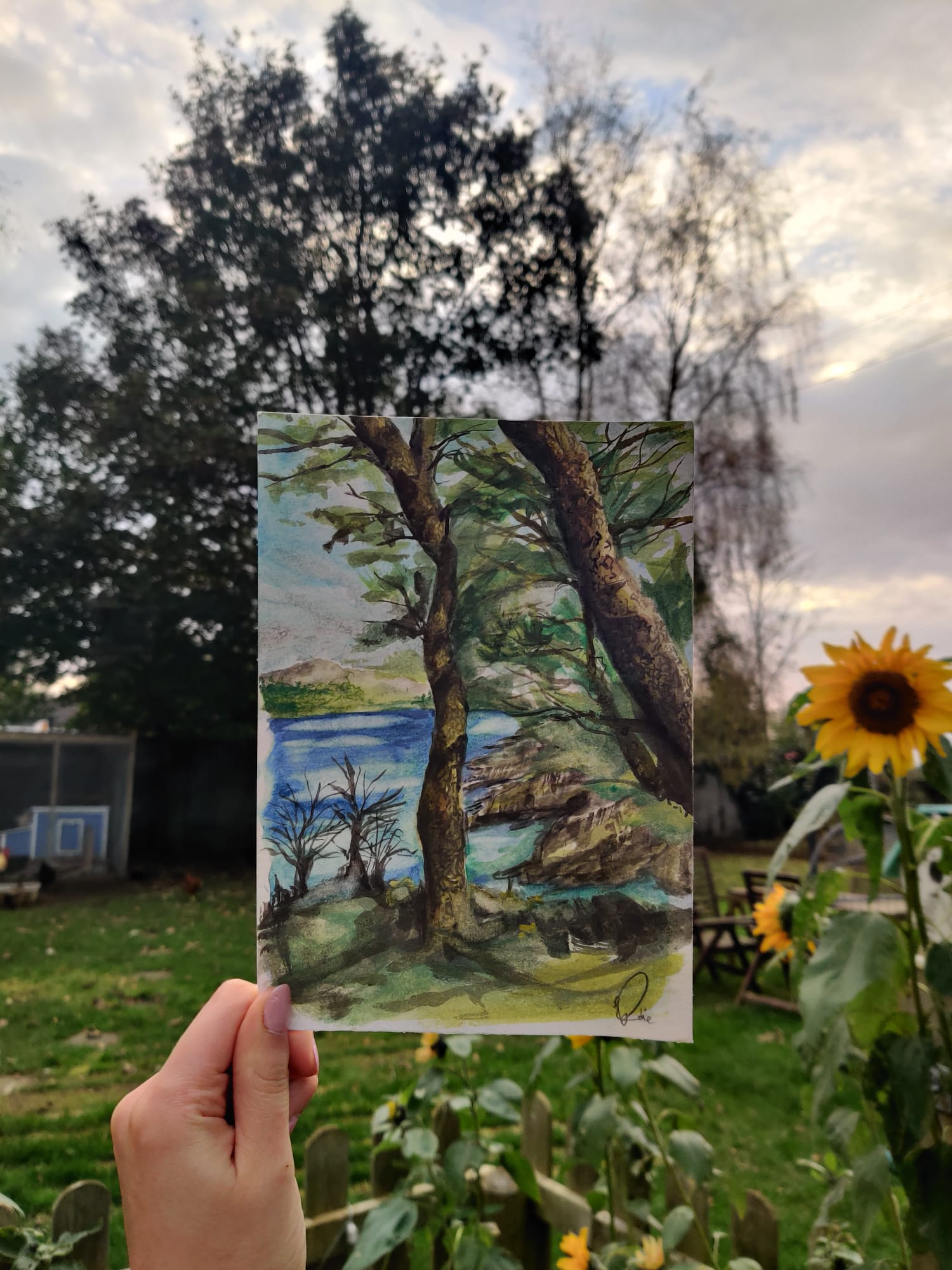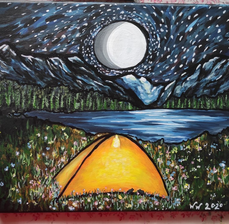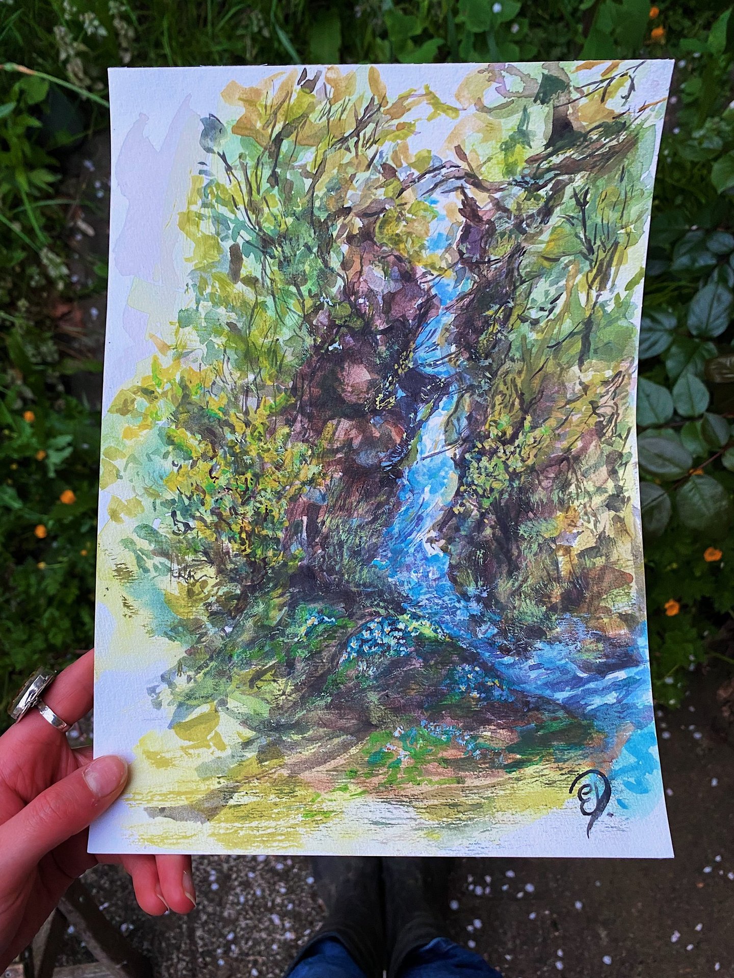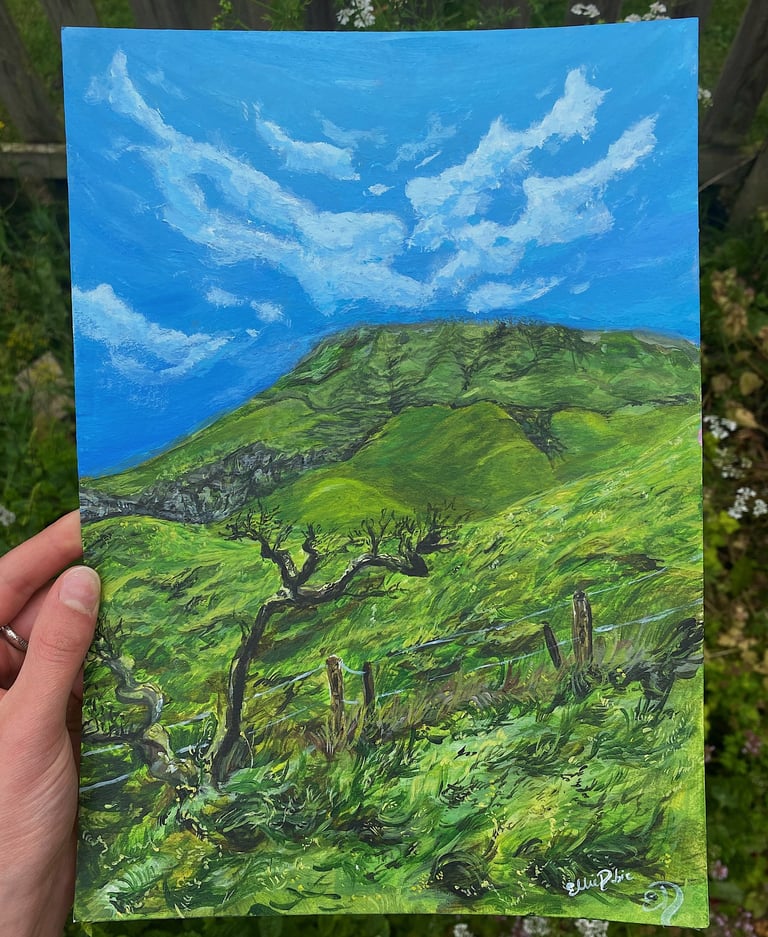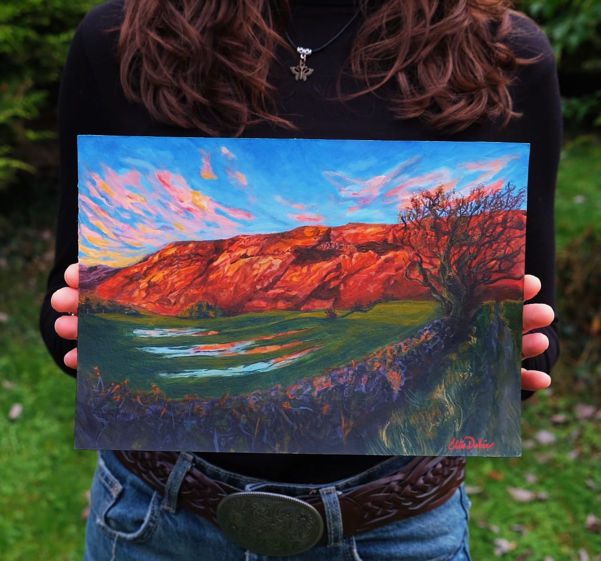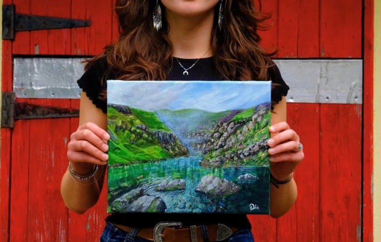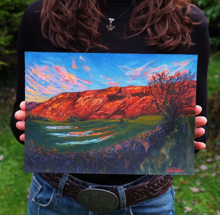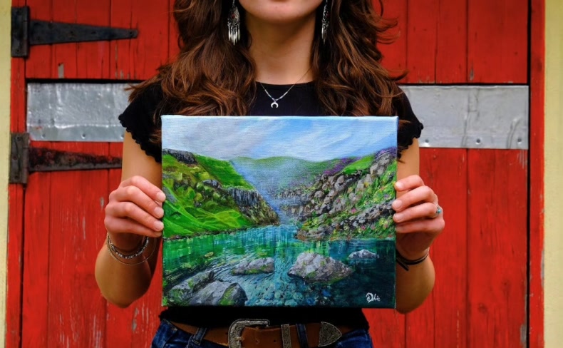 My original works mainly consist of acrylic on canvas and watercolour. I take a lot of inspiration from the places I have been, mainly around Ireland and Scotland. I often get ideas for paintings while on hiking trips where I look forward to trying to recreate the places I've seen using vibrant colours in my own style.
