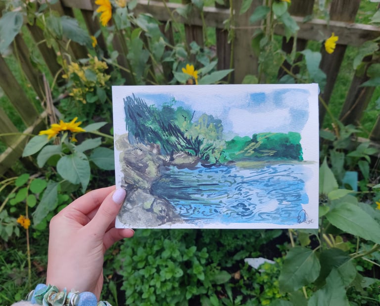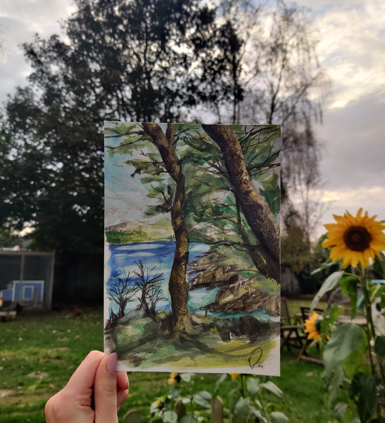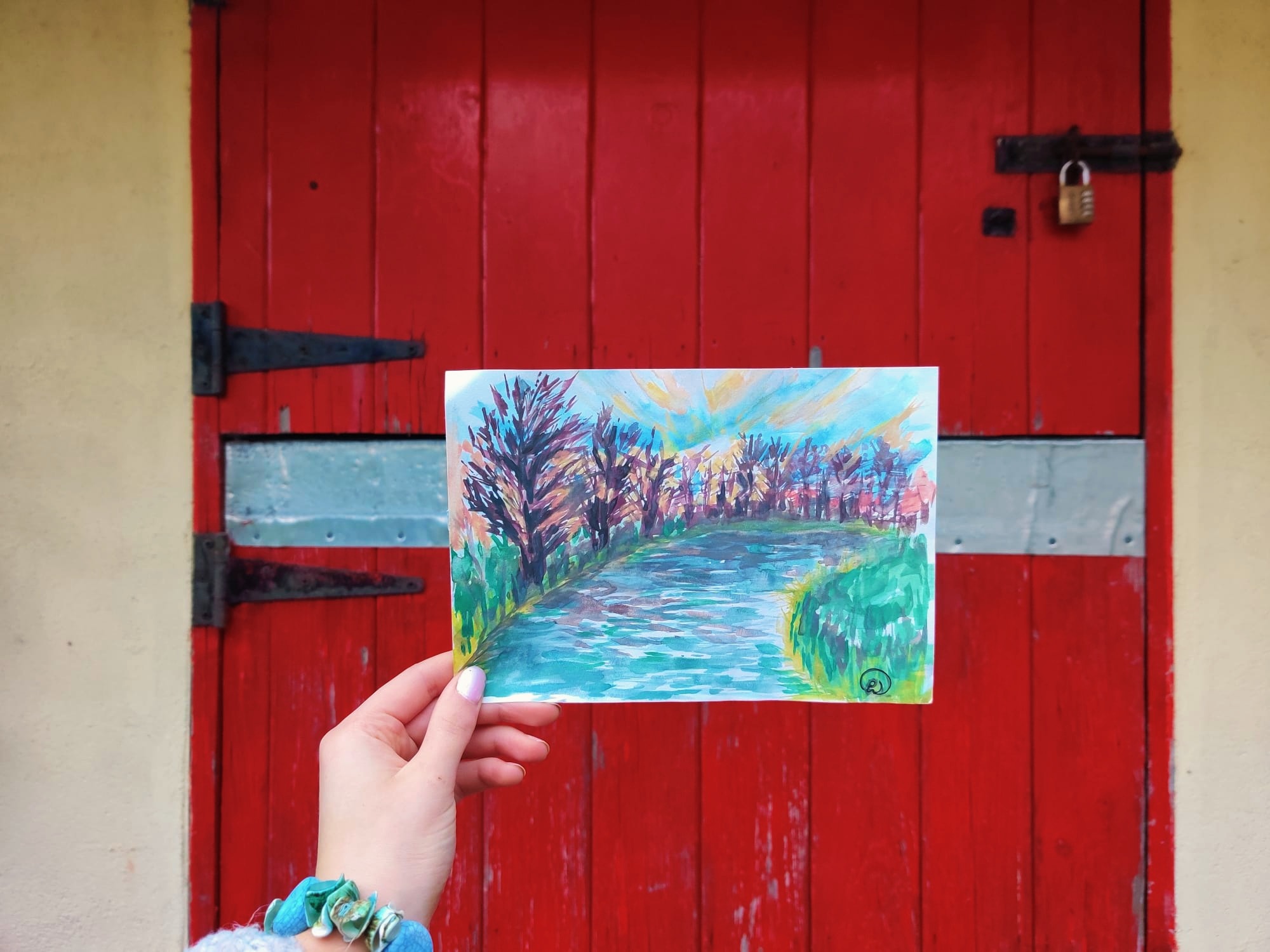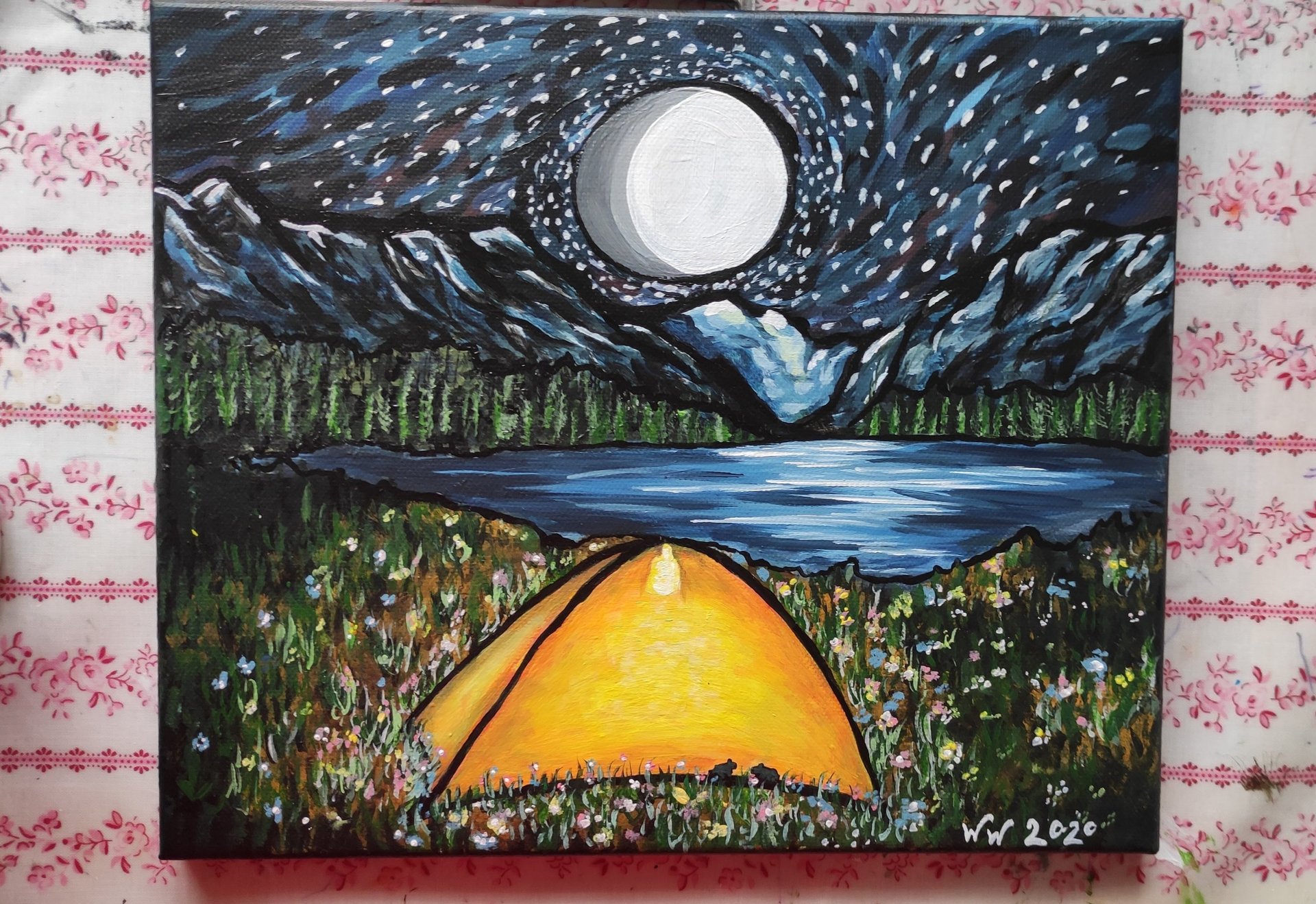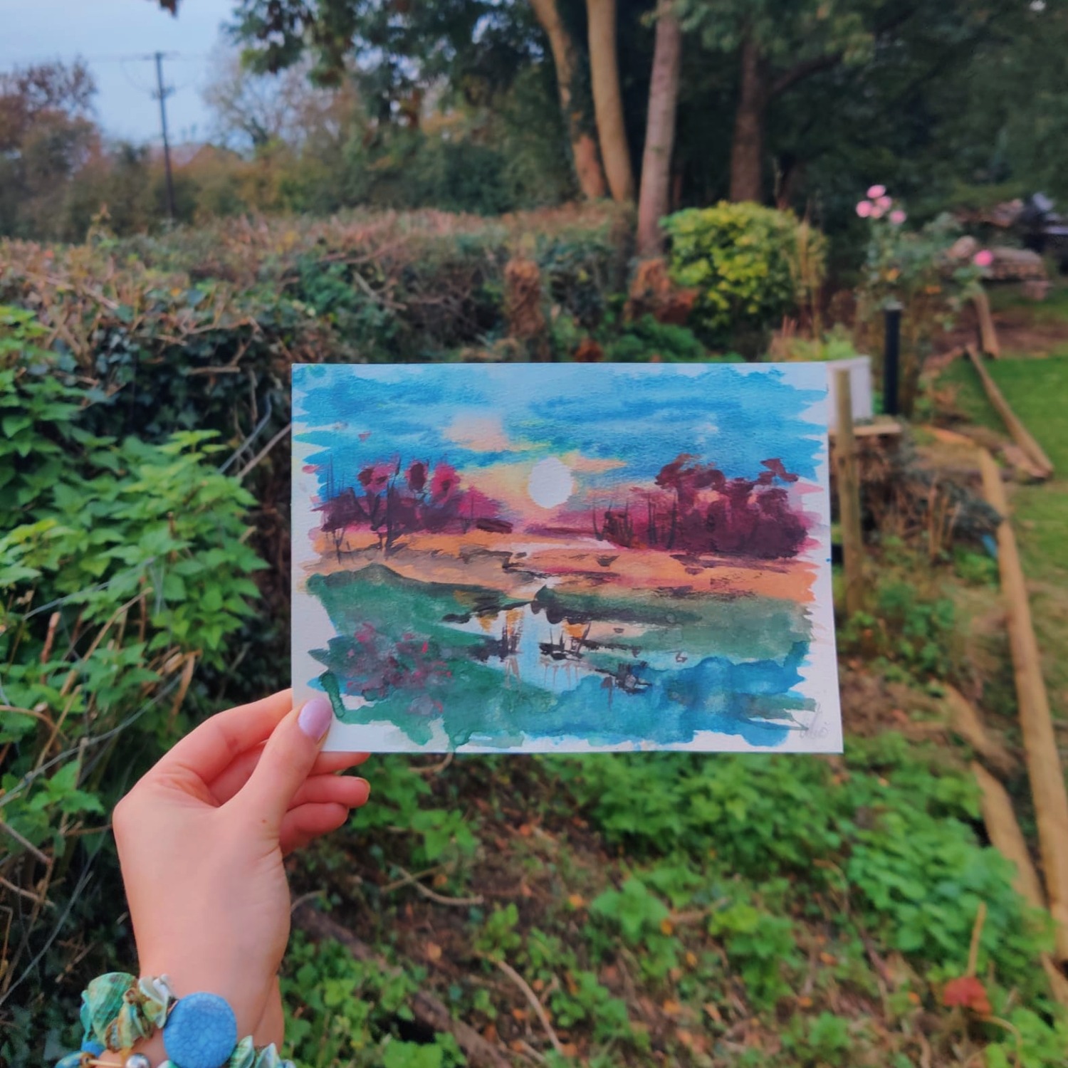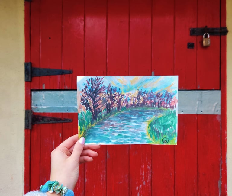 My original works mainly consist of acrylic on canvas and watercolour. I take a lot of inspiration from the places I have been, mainly around Ireland and Scotland. I often get ideas for paintings while on hiking trips where I look forward to trying to recreate the places I've seen using vibrant colours in my own style.
