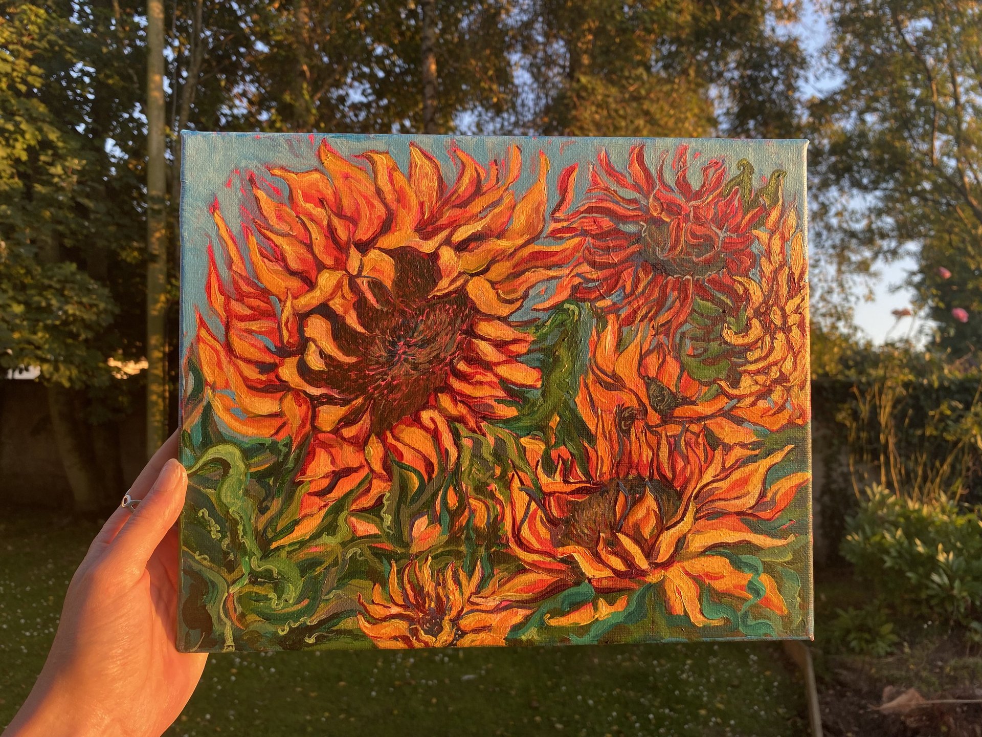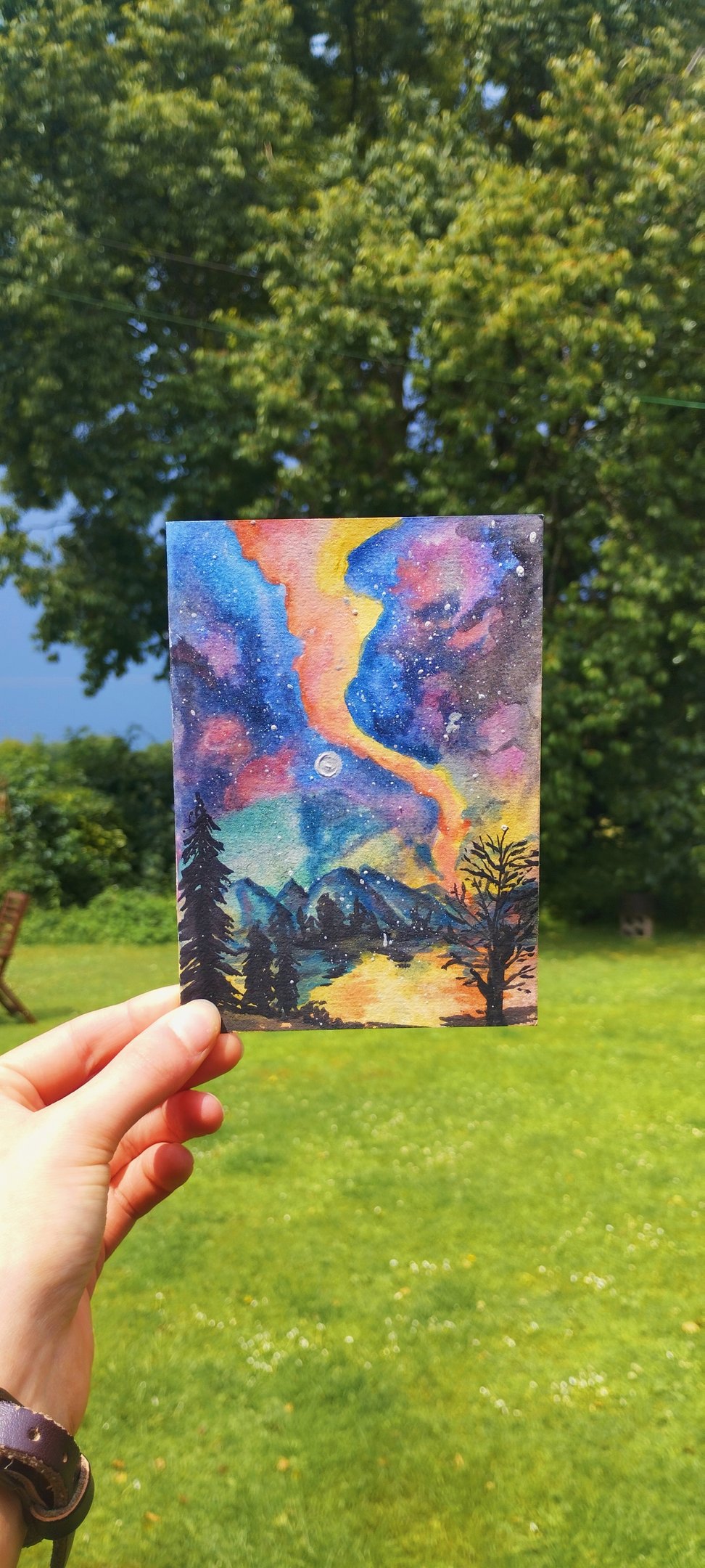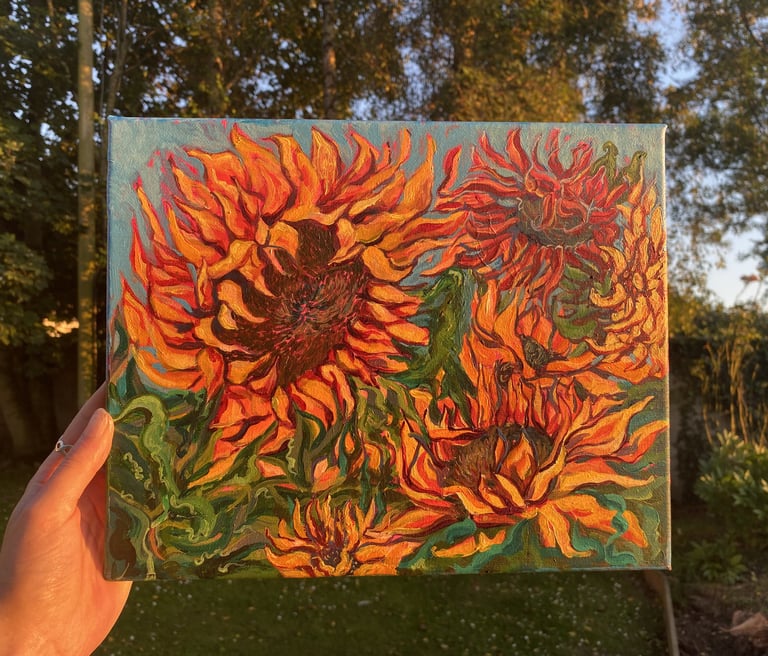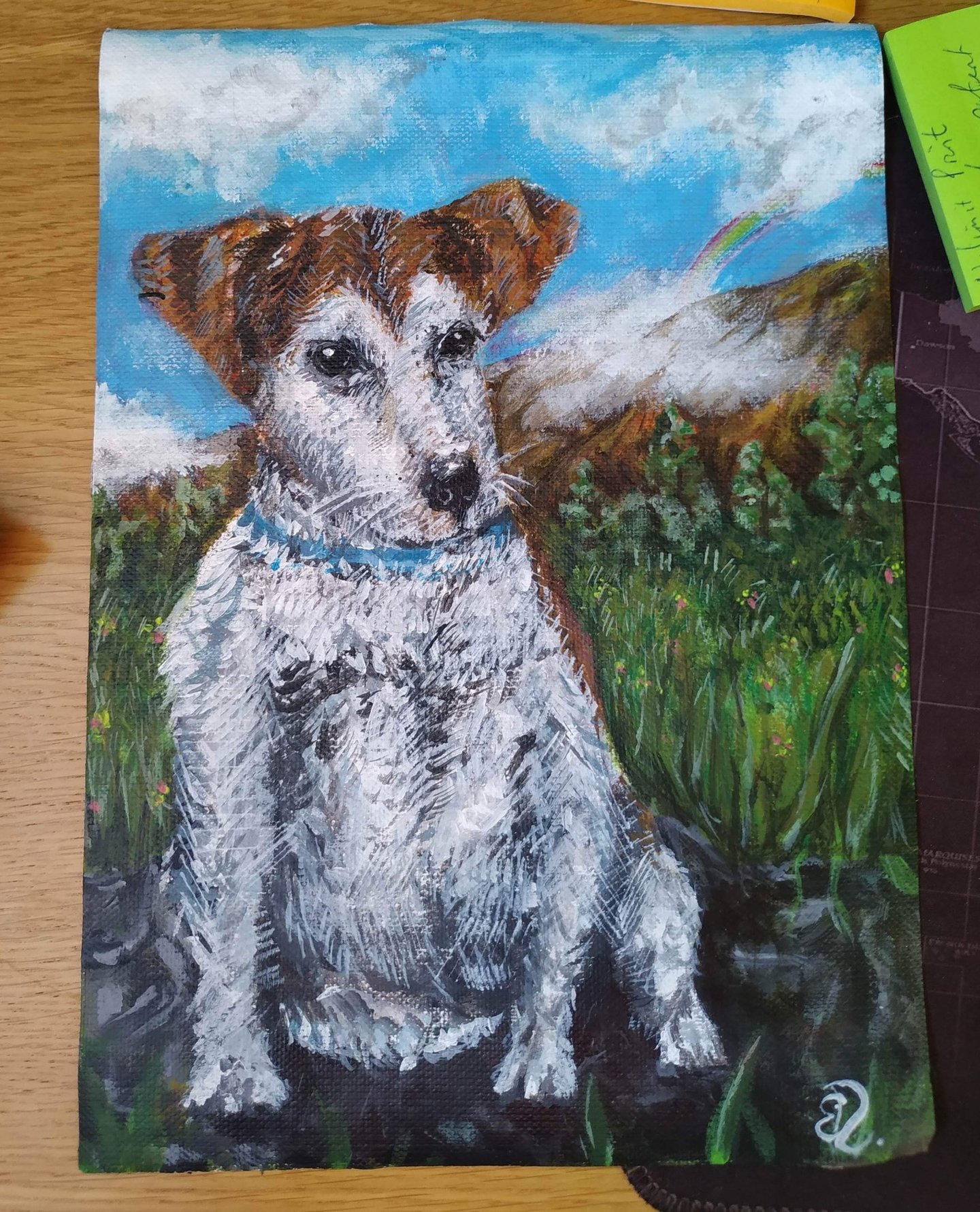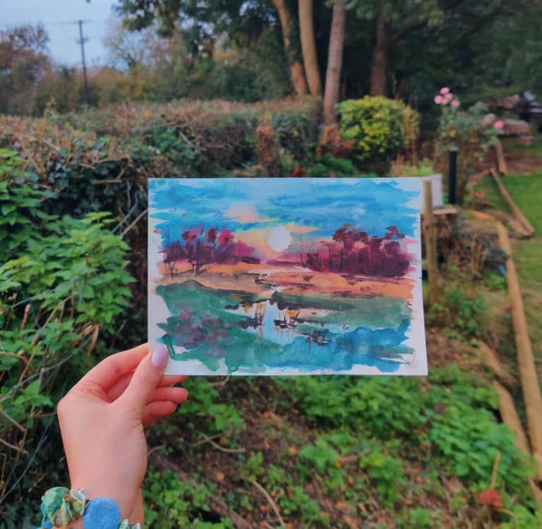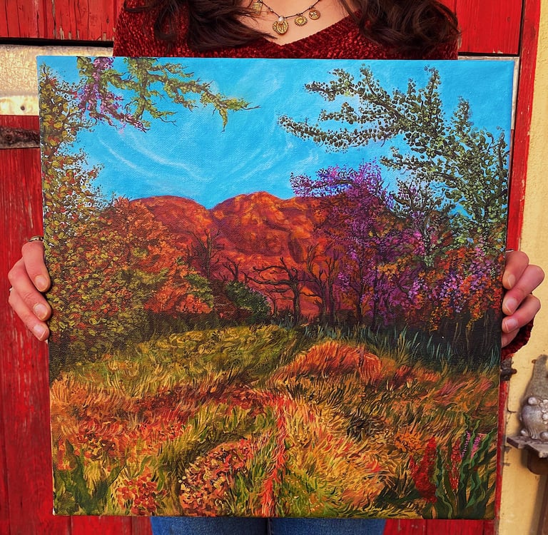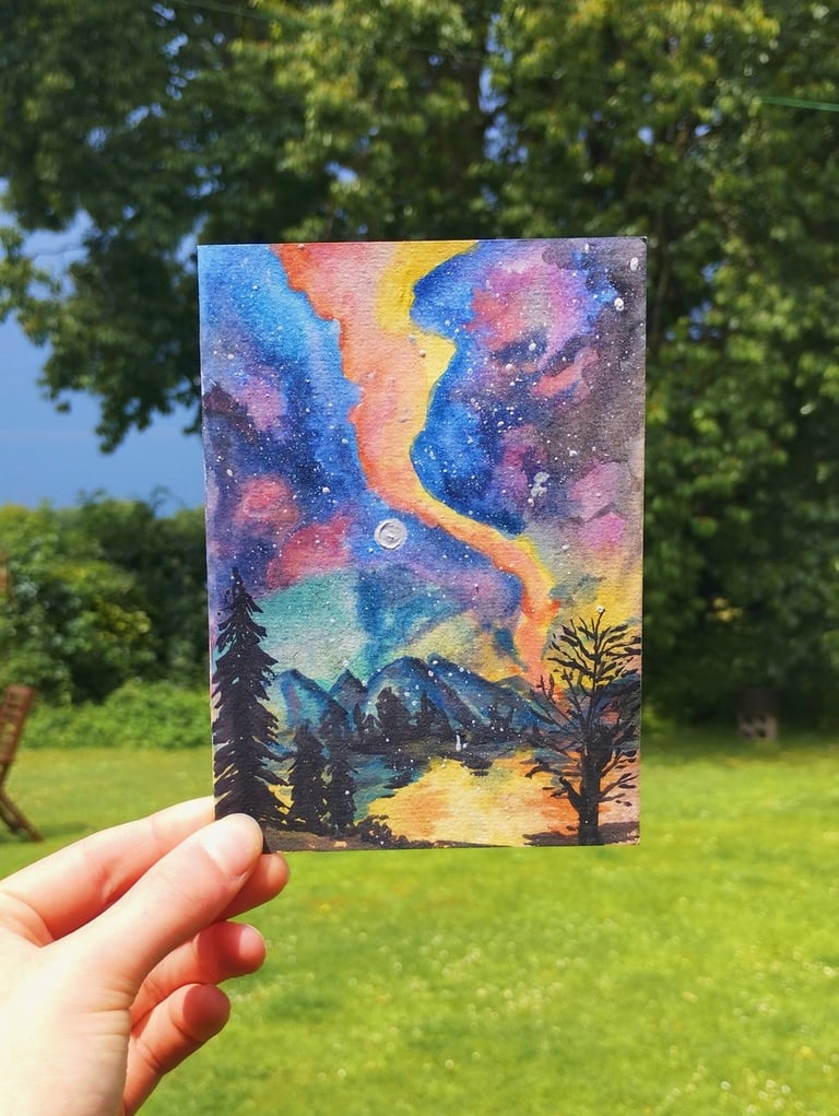 My original works mainly consist of acrylic on canvas and watercolour. I take a lot of inspiration from the places I have been, mainly around Ireland and Scotland. I often get ideas for paintings while on hiking trips where I look forward to trying to recreate the places I've seen using vibrant colours in my own style.