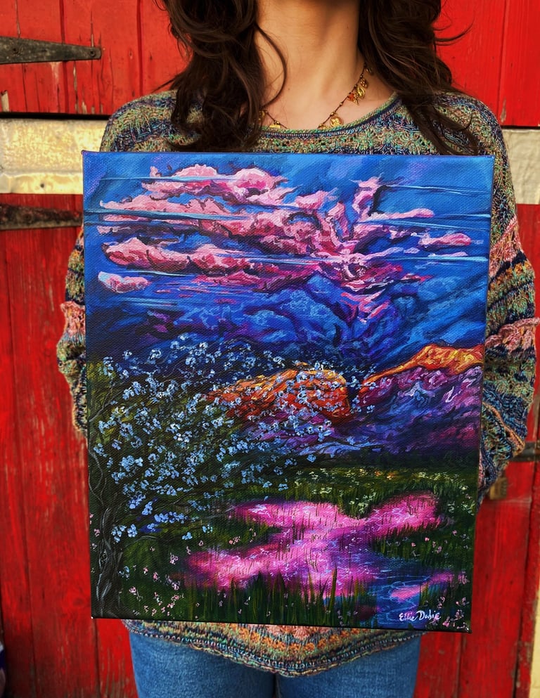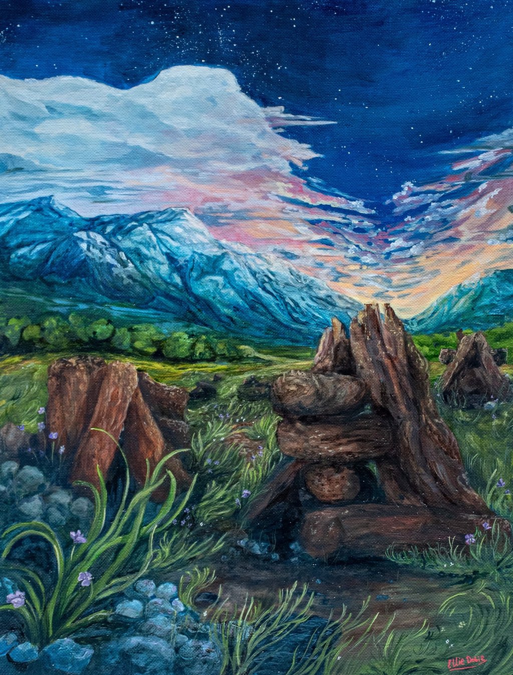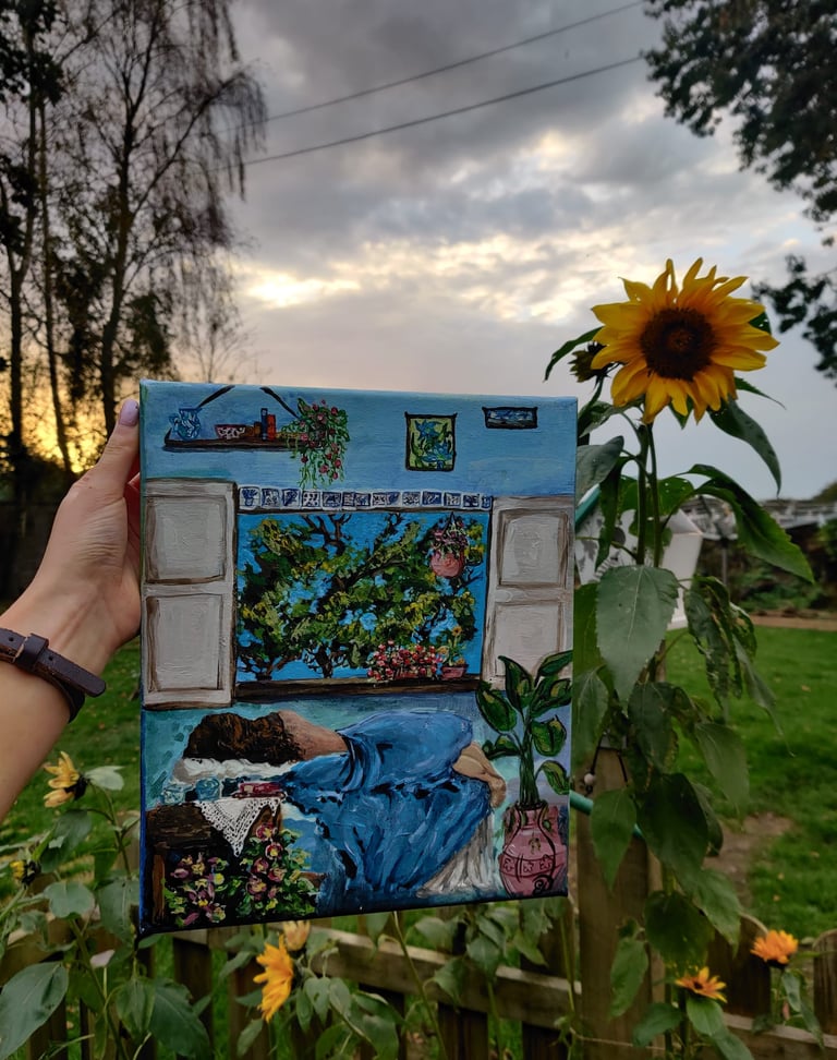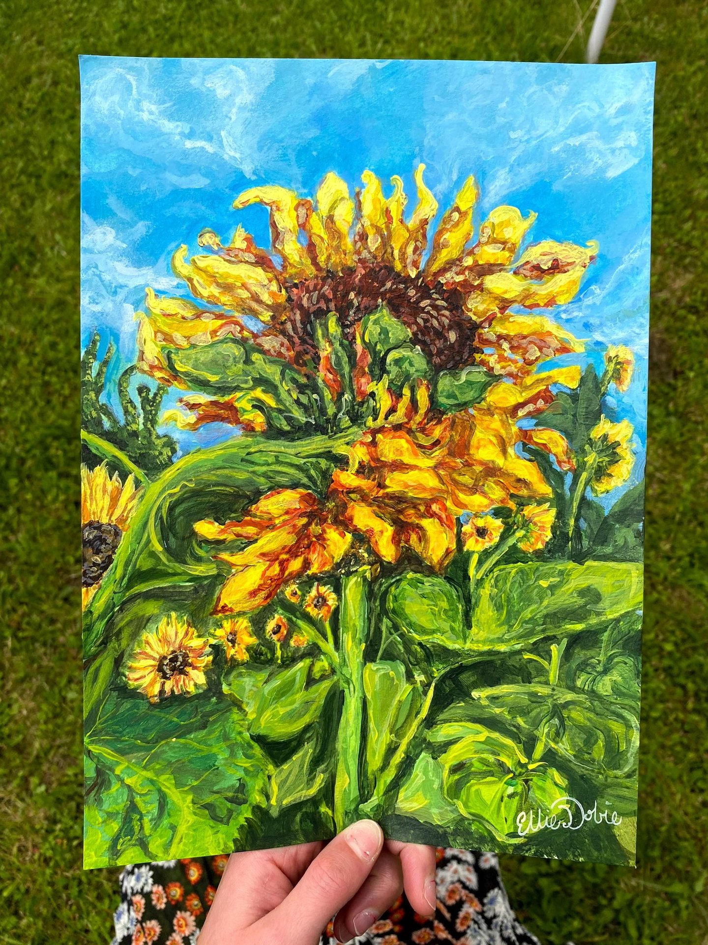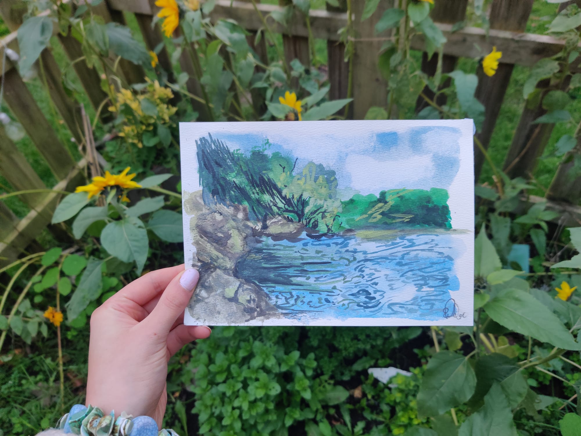 My original works mainly consist of acrylic on canvas and watercolour. I take a lot of inspiration from the places I have been, mainly around Ireland and Scotland. I often get ideas for paintings while on hiking trips where I look forward to trying to recreate the places I've seen using vibrant colours in my own style.
