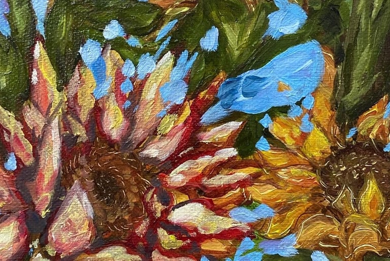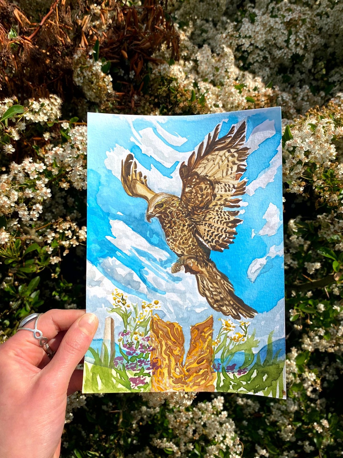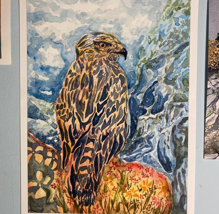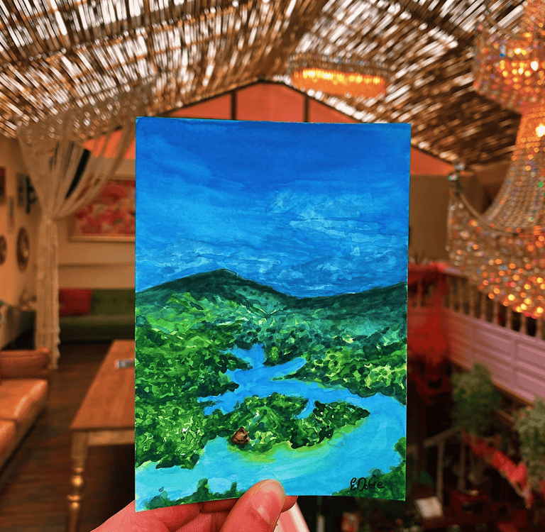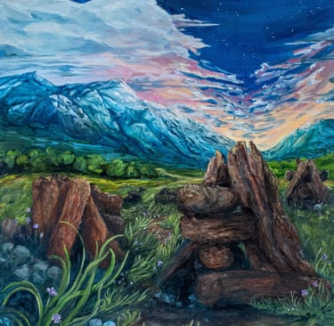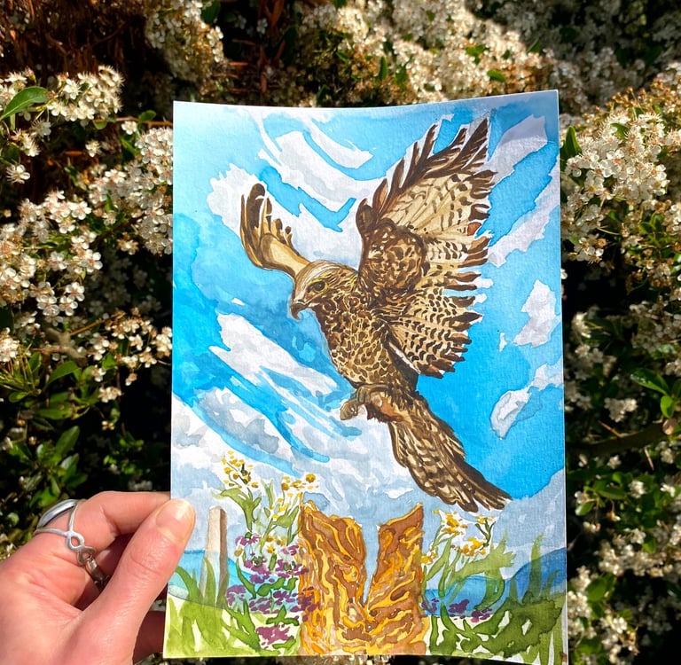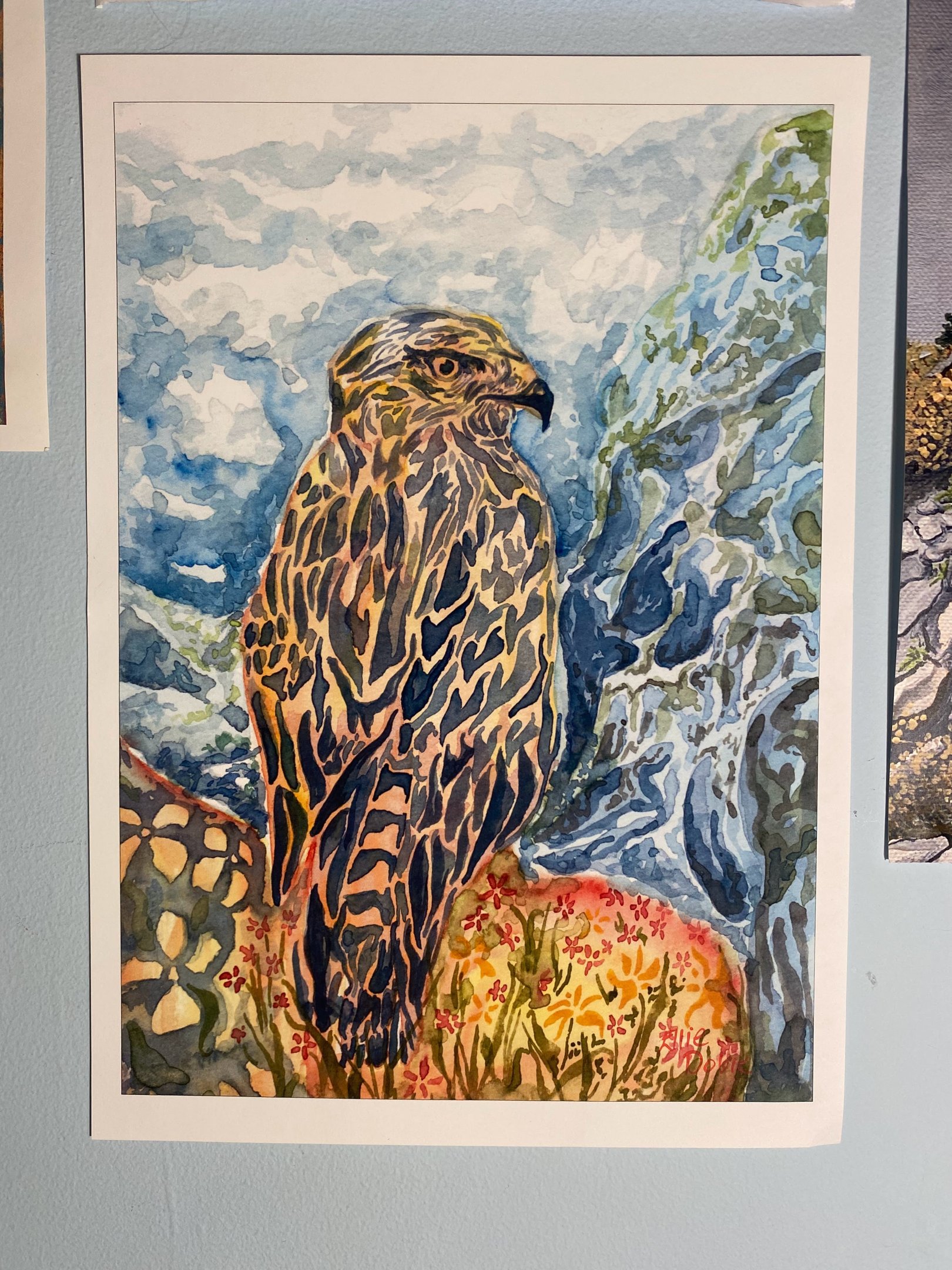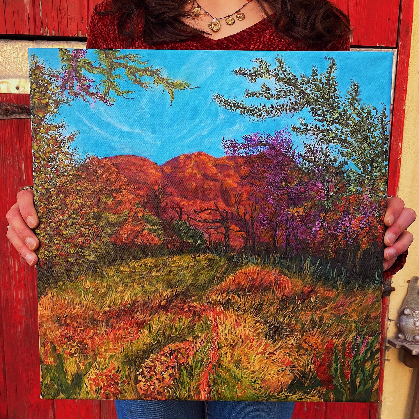 My original works mainly consist of acrylic on canvas and watercolour. I take a lot of inspiration from the places I have been, mainly around Ireland and Scotland. I often get ideas for paintings while on hiking trips where I look forward to trying to recreate the places I've seen using vibrant colours in my own style.