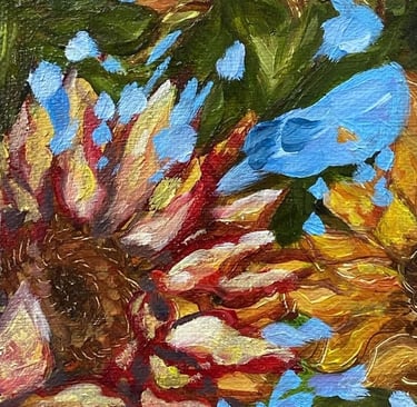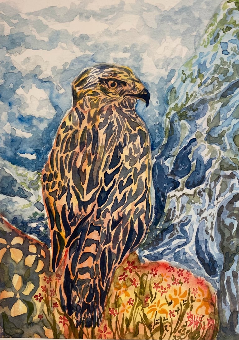 My original works mainly consist of acrylic on canvas and watercolour. I take a lot of inspiration from the places I have been, mainly around Ireland and Scotland. I often get ideas for paintings while on hiking trips where I look forward to trying to recreate the places I've seen using vibrant colours in my own style.